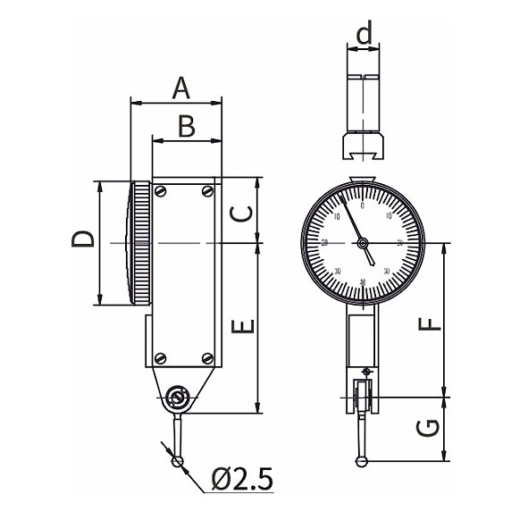 Индикатор рычажно-зубчатый укомплектован державкой для удобства измерения в труднодоступных местах, переходной втулкой с наружным диаметром 8 мм для крепления в стойках или штативах.