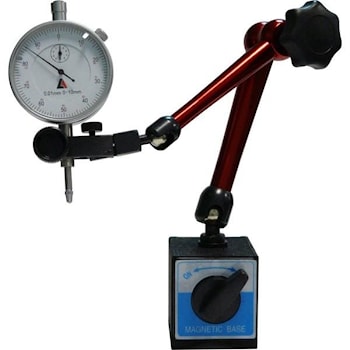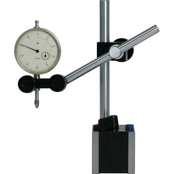 В основании штатива встроены 3 постоянных магнита. По цилиндрической колонке штатива движется муфта со стержнем с закрепленной на конце измерительной головкой.